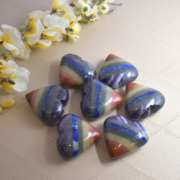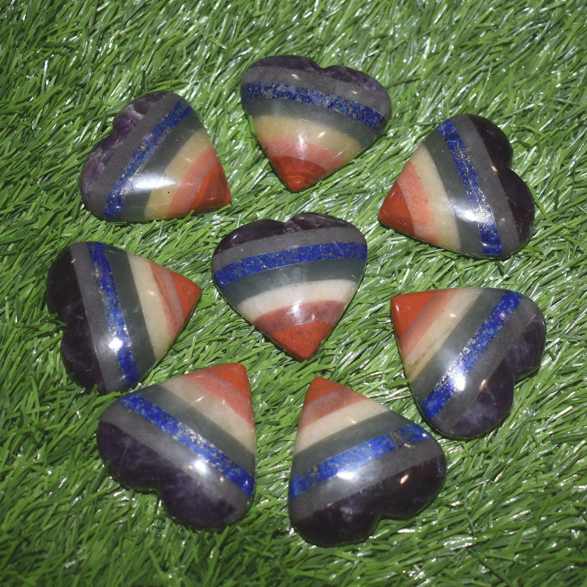 Maureen 7 Chakra Heart Palm Stone, Heart Palm Stone Crystal for physical and emotional alignments and for Chakra balancing, 7 Chakra Crystal Heart Palm Stone