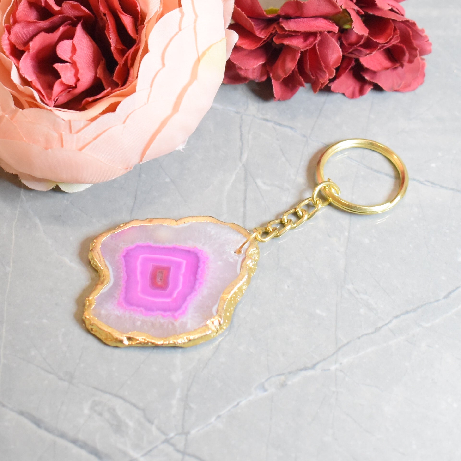 Agate Stone Keychain help to enhances mental function, improves concentration, enhances perception and analytical abilities. It is a soothing and calming gemstone that heals inner anger, anxiety and helps in the strengthening of relationships. Agate Stone instills security and safety.