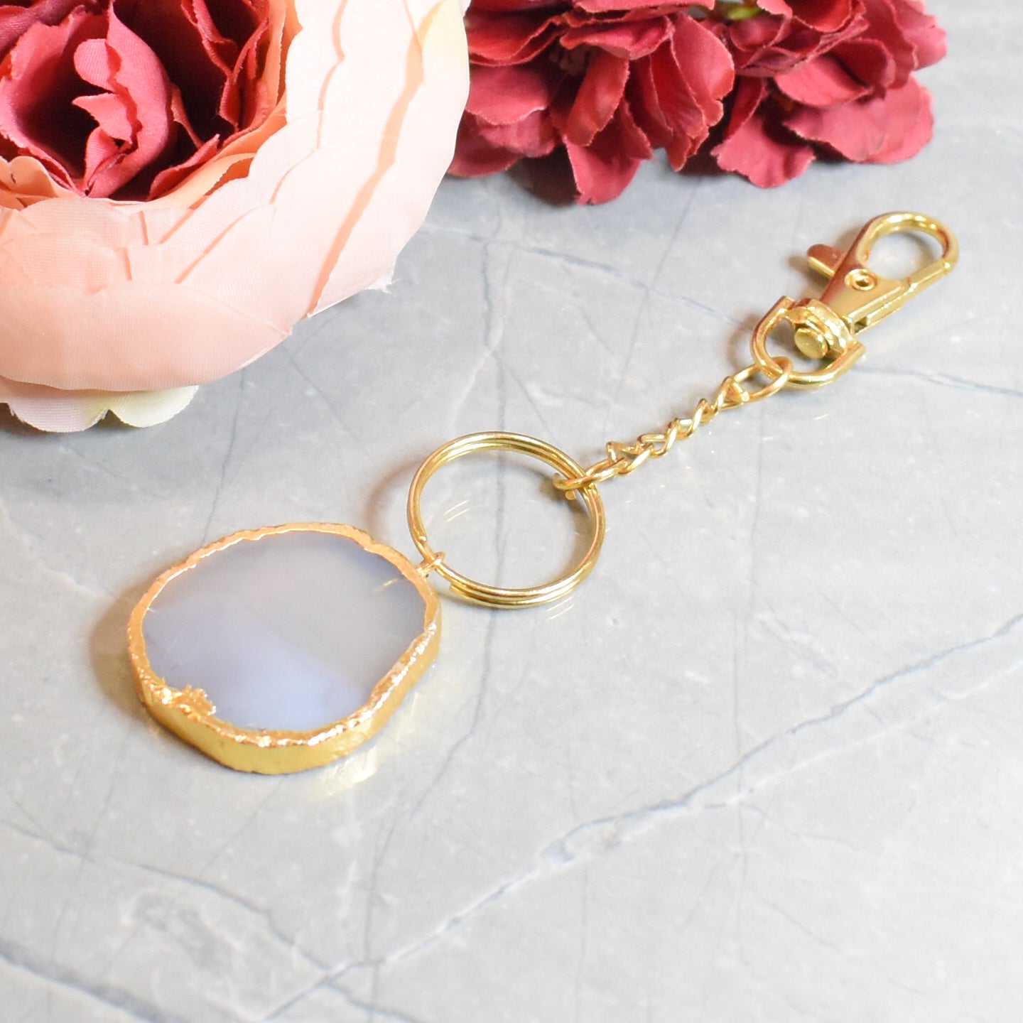 Agate Stone Keychain help to enhances mental function, improves concentration, enhances perception and analytical abilities. It is a soothing and calming gemstone that heals inner anger, anxiety and helps in the strengthening of relationships. Agate Stone instills security and safety.