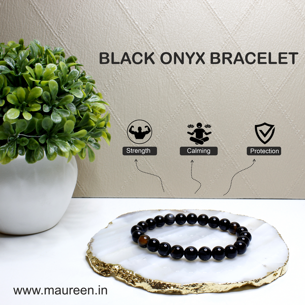Maureen Black Onyx Healing Crystal Stone Chalcedony Bracelet for Men and Women
