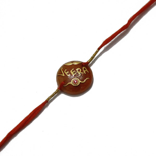 Maureen Chalcedony Rakhi for Bhai | Natural Chalcedony Rakhi for Bhai | Natural Chalcedony Rakhi with Text for Brother