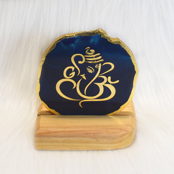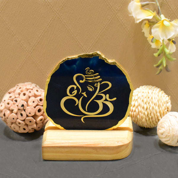 Maureen Designer Agate Ganesh Ji Plaque | Agate Ganesh Ji Plaque with Wooden Stand | Decorative Agate Ganesh Ji Plaque