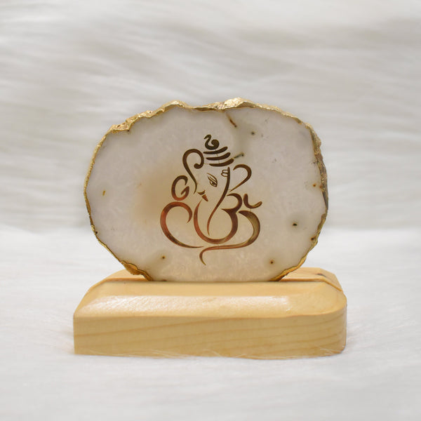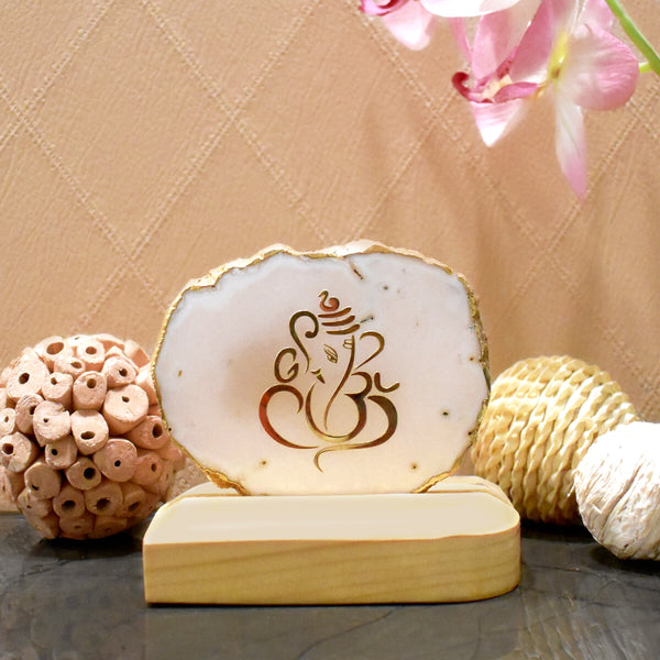 Maureen Designer Agate Ganesh Ji Plaque | Agate Ganesh Ji Plaque with Wooden Stand | Decorative Agate Ganesh Ji Plaque