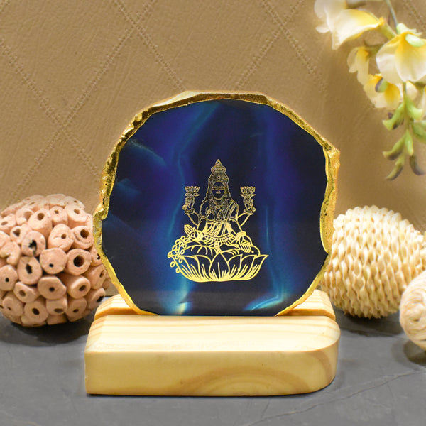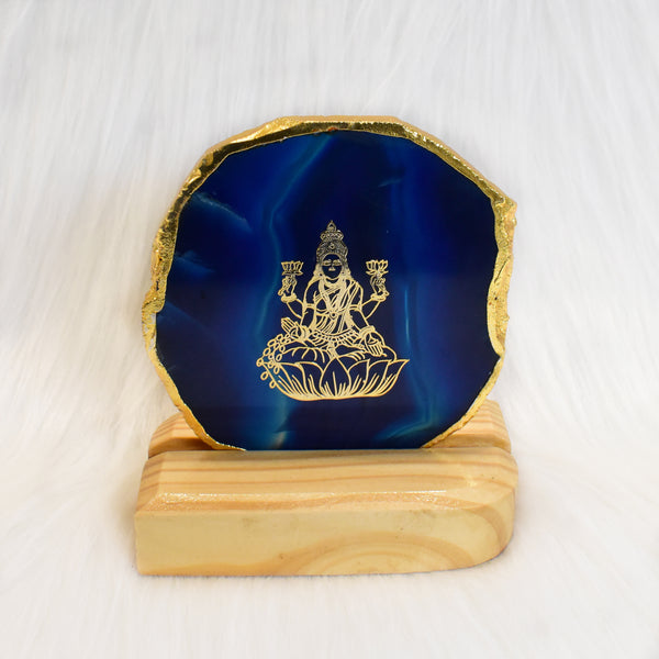 Maureen Designer Agate Laxmi Ji Plaque | Agate Laxmi Ji Plaque with Wooden Stand | Decorative Agate Laxmi Ji Plaque