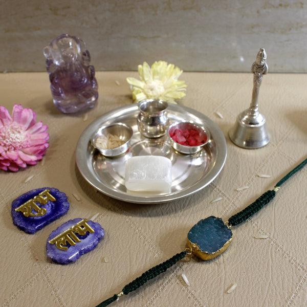 Natural Druzy stone Rakhi will make him more affectionate and help him repress feelings of anger and jealousy. On the other hand a stone Agate Stone Chain Lumba helps to cure physical and emotional ailments and so on. Agate transforms negative energy into positive energy....