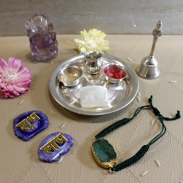Natural Druzy stone Rakhi will make him more affectionate and help him repress feelings of anger and jealousy. On the other hand a stone Agate Stone Chain Lumba helps to cure physical and emotional ailments and so on. Agate transforms negative energy into positive energy....