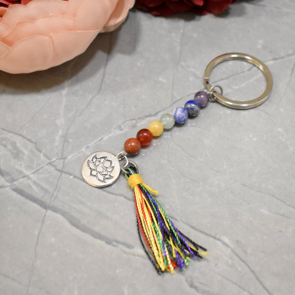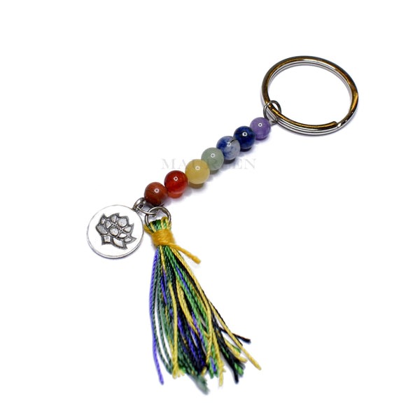 Maureen Natural 7 Chakra Beads Keychain with Lotus Pendant & Colorful Tassel Stone Key Ring for Good Luck and Prosperity