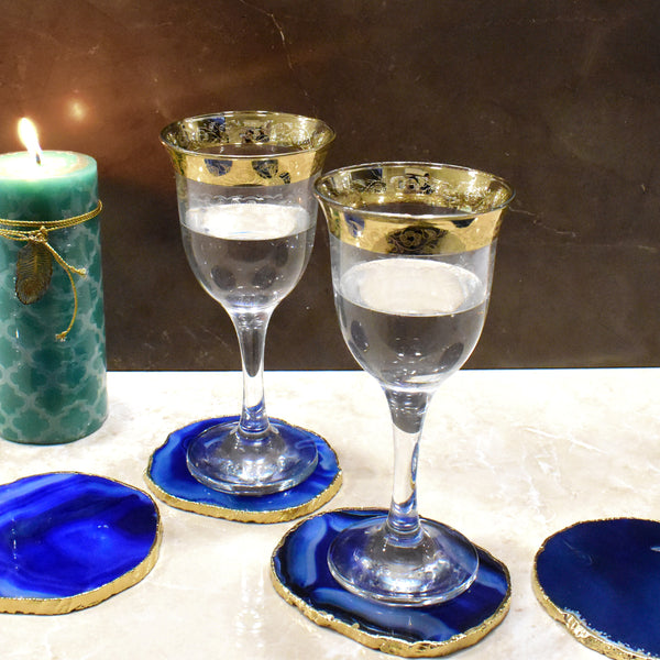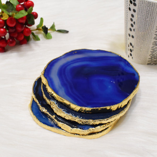 Maureen Natural Agate Coaster with Golden Electroplating | Agate Coaster Free Shape with Golden Electroplated Edges ( 4 inch )