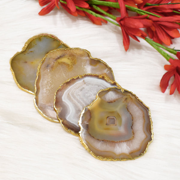 Maureen Natural Agate Coaster with Golden Electroplating | Agate Coaster Free Shape with Golden Electroplated Edges ( 4 inch )