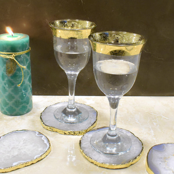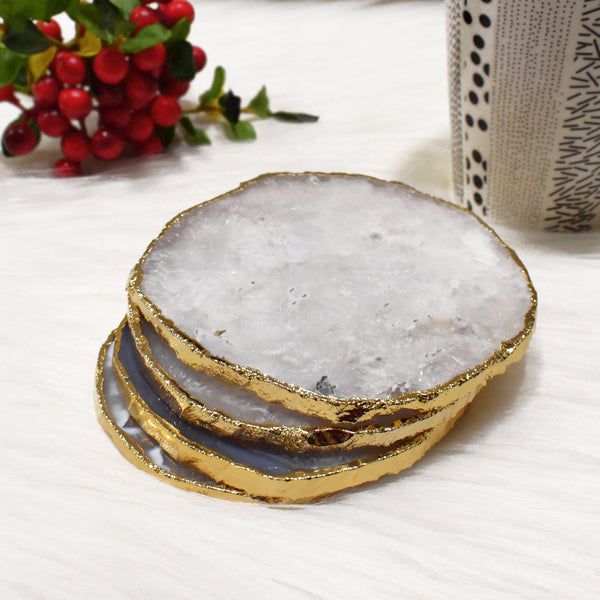 Maureen Natural Agate Coaster with Golden Electroplating | Agate Coaster Free Shape with Golden Electroplated Edges ( 4 inch )