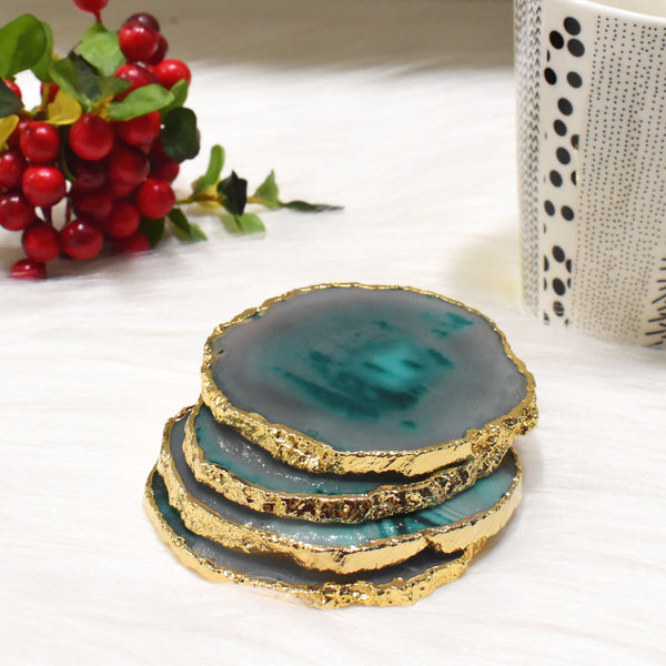 Maureen Natural Agate Coaster with Golden Electroplating | Agate Coaster Free Shape with Golden Electroplated Edges ( 3 inch )