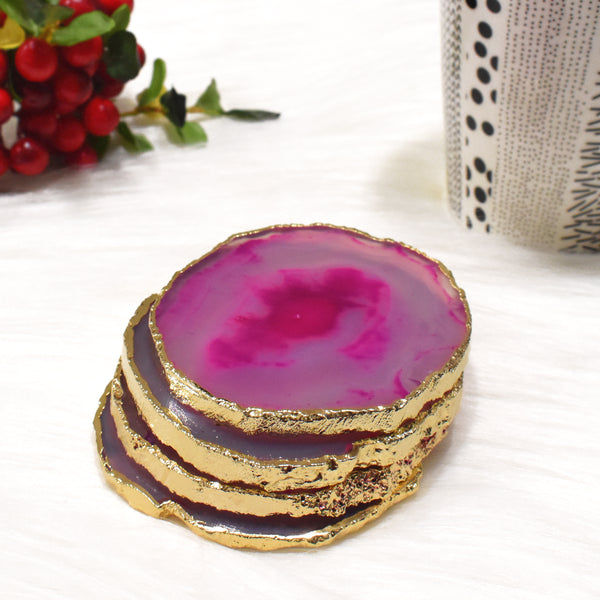 Maureen Natural Agate Coaster with Golden Electroplating | Agate Coaster Free Shape with Golden Electroplated Edges ( 3 inch )