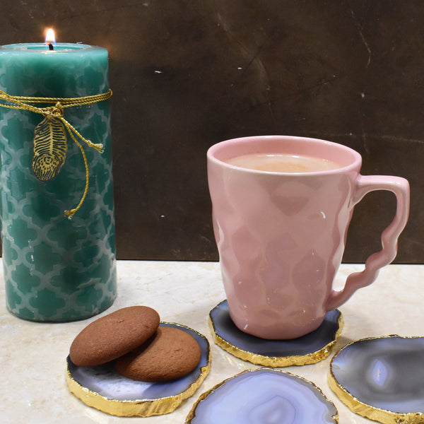 Maureen Natural Agate Coaster with Golden Electroplating | Agate Coaster Free Shape with Golden Electroplated Edges ( 3 inch )