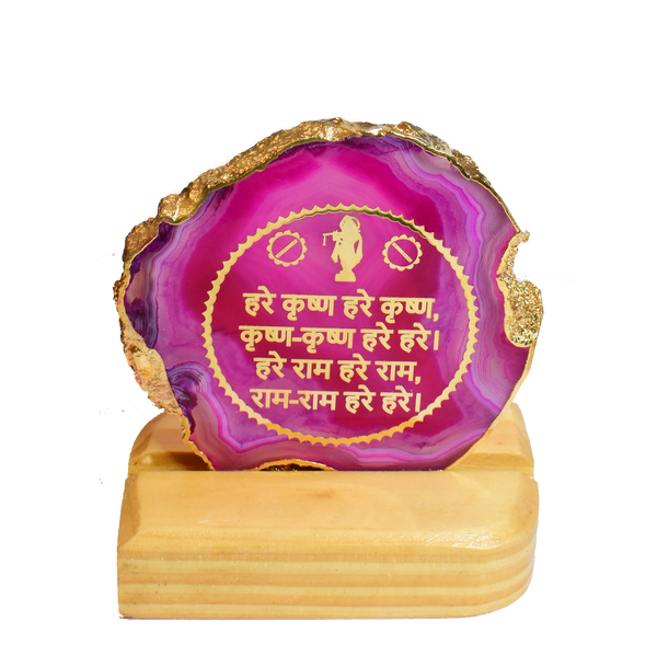Maureen Natural Agate Krishna Mantra Plaque | Agate Krishna Mantra Plaque with Wooden Stand