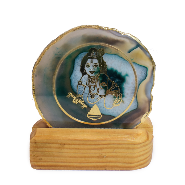 Maureen Natural Agate Ladoo Gopal Ji Plaque | Agate Ladoo Gopal Ji Plaque with Wooden Stand