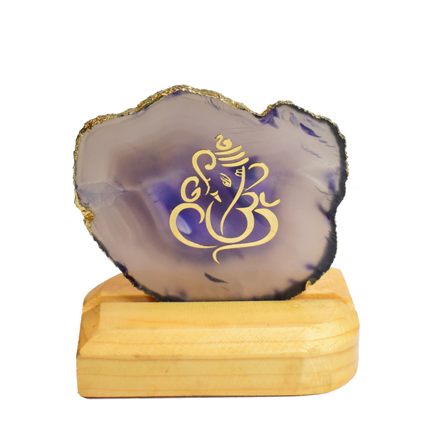 Maureen Natural Agate Lord Ganesha Plaque | Agate Lord Ganesha Plaque with Wooden Stand