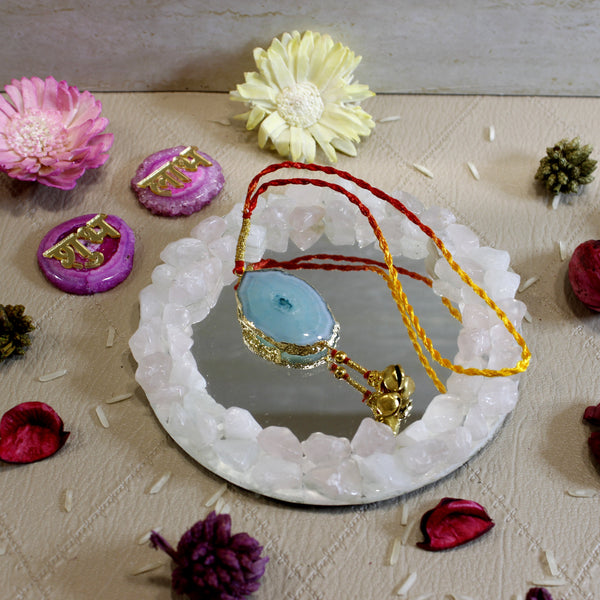 Maureen Natural Agate Stone Moli Lumba with Hanging | Natural Semi Precious Stone Lumba for Bhabhi | Agate Lumba Thread with Ghungru