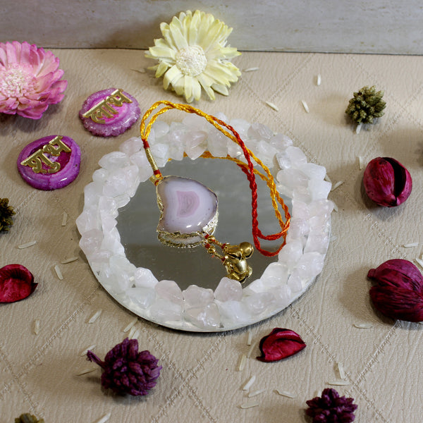 Maureen Natural Agate Stone Moli Lumba with Hanging | Natural Semi Precious Stone Lumba for Bhabhi | Agate Lumba Thread with Ghungru