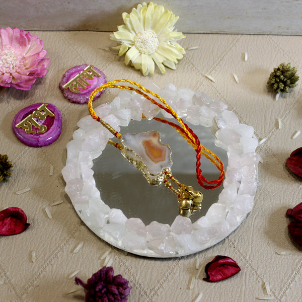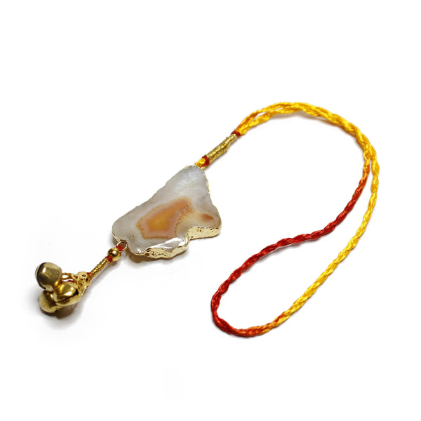 Maureen Natural Agate Stone Moli Lumba with Hanging | Natural Semi Precious Stone Lumba for Bhabhi | Agate Lumba Thread with Ghungru