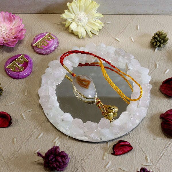Maureen Natural Agate Stone Moli Lumba with Hanging | Natural Semi Precious Stone Lumba for Bhabhi | Agate Lumba Thread with Ghungru