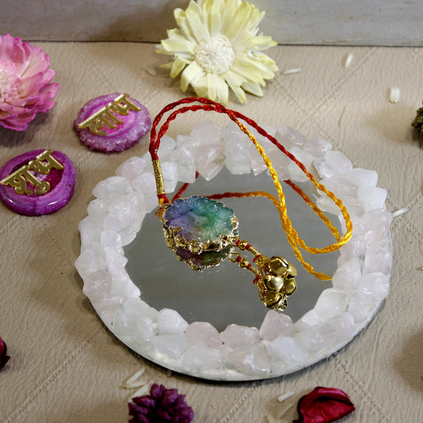 Maureen Natural Agate Stone Moli Lumba with Hanging | Natural Semi Precious Stone Lumba for Bhabhi | Agate Lumba Thread with Ghungru
