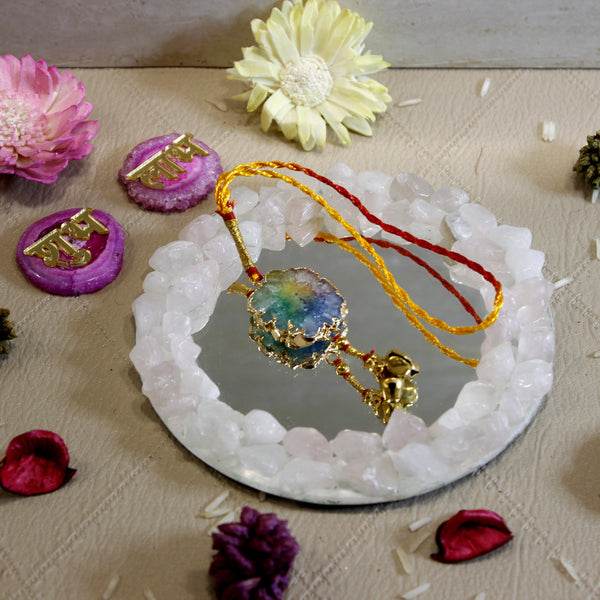 Maureen Natural Agate Stone Moli Lumba with Hanging | Natural Semi Precious Stone Lumba for Bhabhi | Agate Lumba Thread with Ghungru