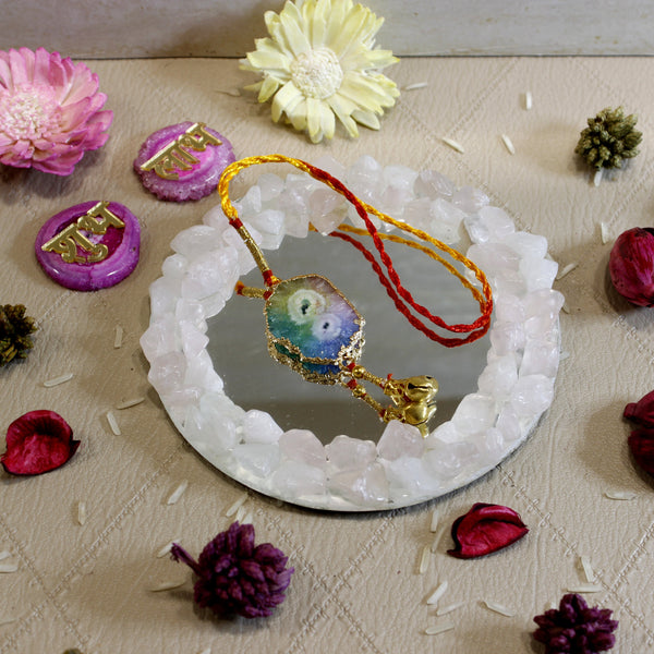 Maureen Natural Agate Stone Moli Lumba with Hanging | Natural Semi Precious Stone Lumba for Bhabhi | Agate Lumba Thread with Ghungru
