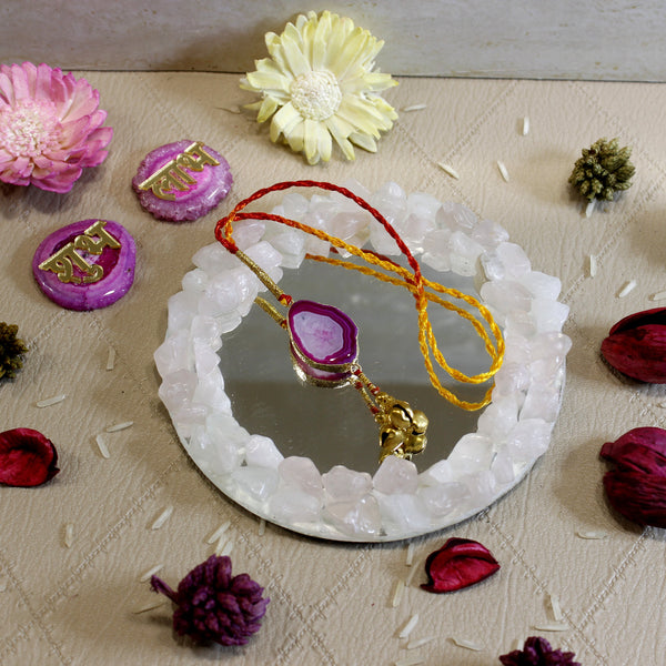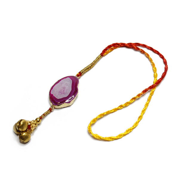 Maureen Natural Agate Stone Moli Lumba with Hanging | Natural Semi Precious Stone Lumba for Bhabhi | Agate Lumba Thread with Ghungru