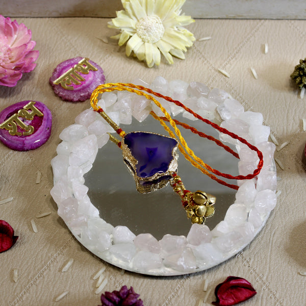 Maureen Natural Agate Stone Moli Lumba with Hanging | Natural Semi Precious Stone Lumba for Bhabhi | Agate Lumba Thread with Ghungru