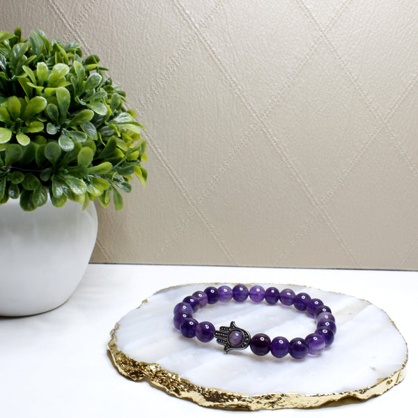 Maureen Natural Energized Amethyst Hamsa Bracelet Crystal Stone Bracelet for Healing