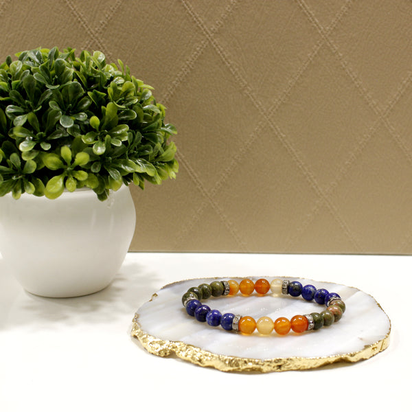 Maureen Natural Friendship Mix Stone Bracelet combination of 3 Magical Stone Unakite, Lapis Lazuli & Carnelian for Men & Women