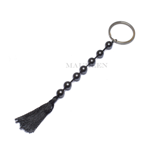 Maureen Natural Hematite Beads Keychain Crystal Hematite Japmala Stone Tassel Key Ring for Good Luck and Prosperity