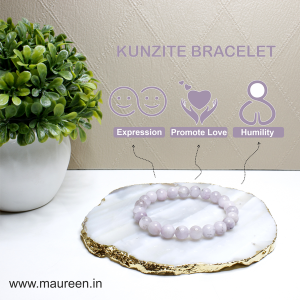 Maureen Natural Kunzite Stone Beads Bracelet for Reiki Healing, Crystal Healing, Chakra Aura for Men Women Bracelet