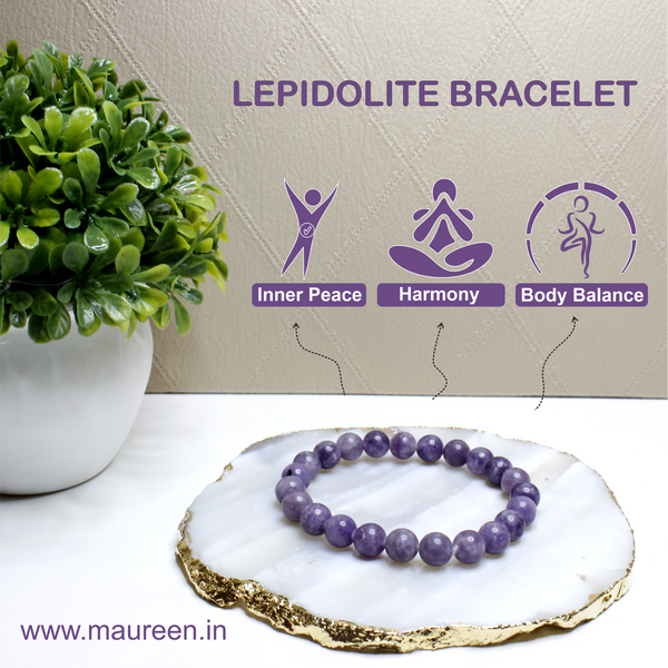 Maureen Natural Lepidolite Bracelet Crystal Stone Beads Bracelet for Reiki Healing and Crystal Healing