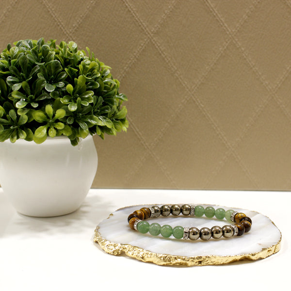 Maureen Natural Libra Zodiac Bracelet combination of 3 Magical Stone Tiger Eye, Green Aventurine & Pyrite for Men & Women