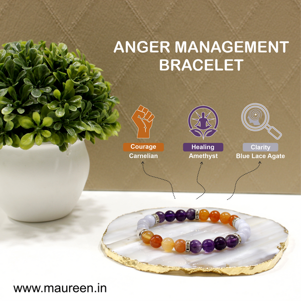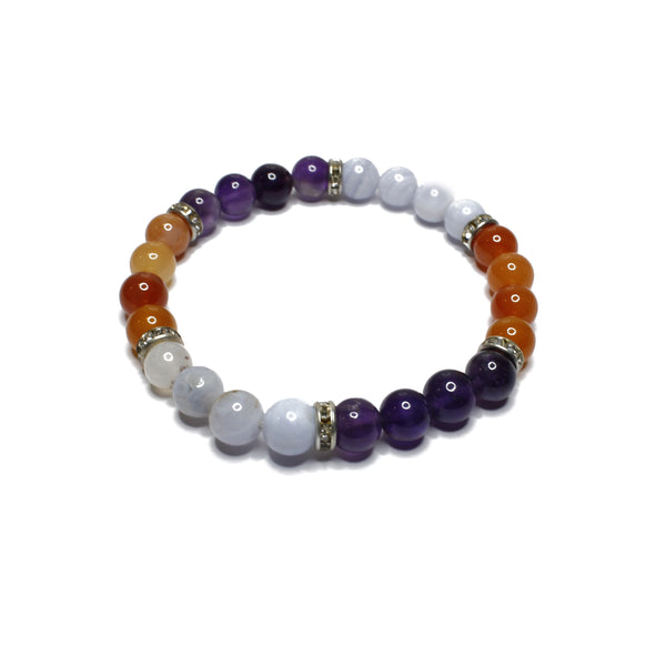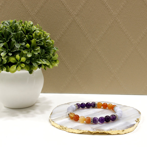 Maureen Natural Mix Stone Anger Management Bracelet combination of 3 Magical Stone Blue Lace Agate, Amethyst & Carnelian for Men & Women