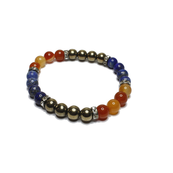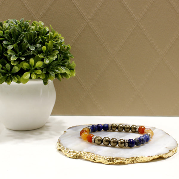 Maureen Natural Mix Stone Motivation and Self Believe Bracelet combination of 3 Magical Stone Carnelian, Pyrite & Lapis Lazuli for Men & Women