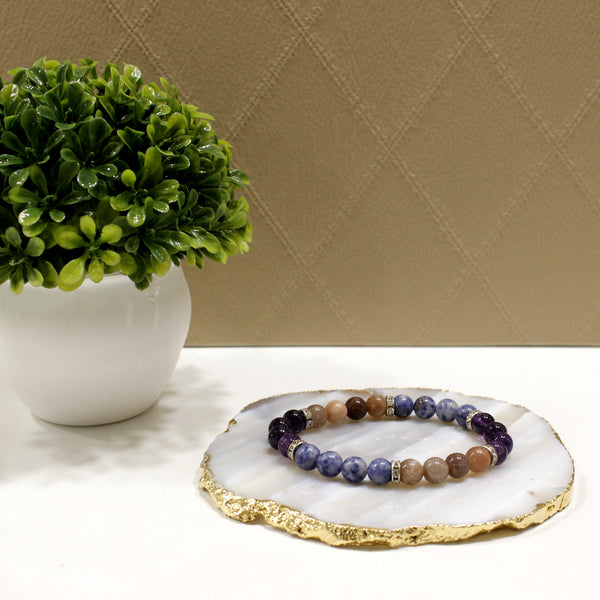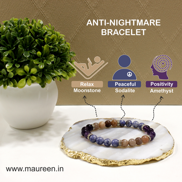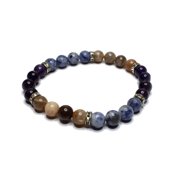 Maureen Natural Mix Stone Nightmares Bracelet combination of 3 Magical Stone Amethyst, Moonstone & Sodalite for Men & Women