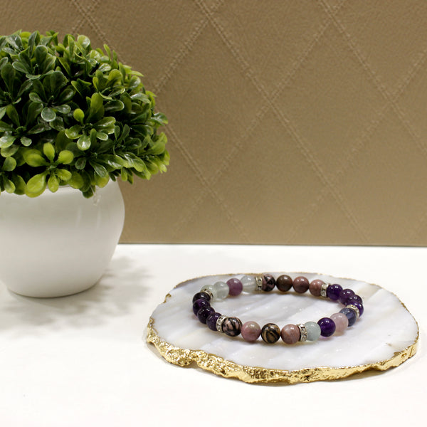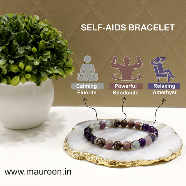 Maureen Natural Mix Stone Self Aids Bracelet combination of 3 Magical Stone Rhodonite, Flourite & Amethyst for Men & Women