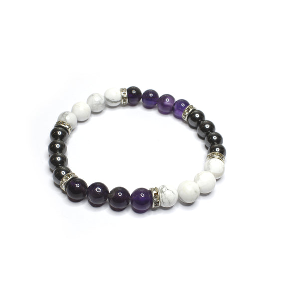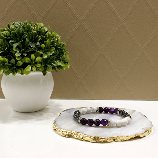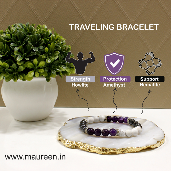 Maureen Natural Mix Stone Travelling Bracelet combination of 3 Magical Stone Amethyst, Hematite & Howlite for Men & Women
