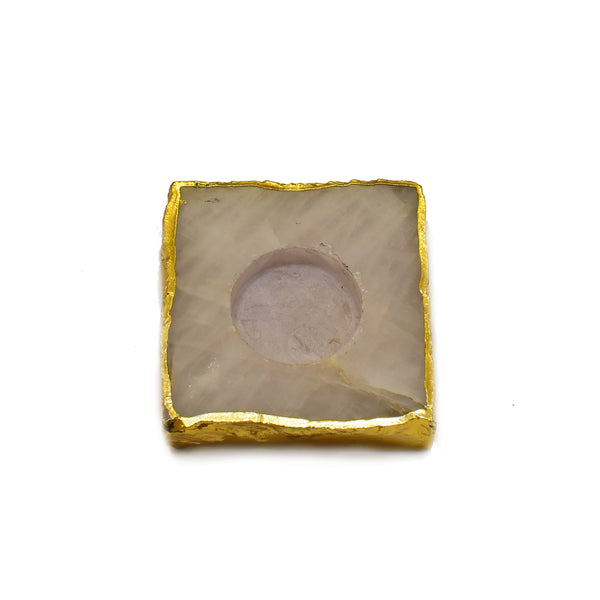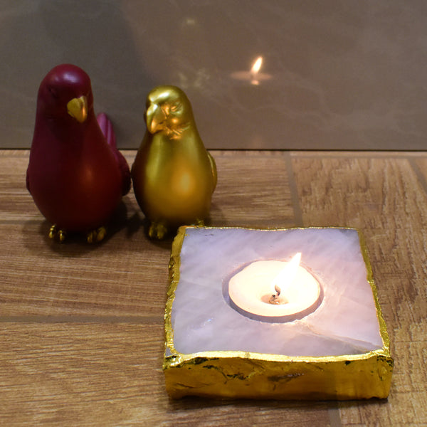 Maureen Natural Rose Quartz Tea Light for Puja | Designer Natural Rose Quartz Tealight for Diwali
