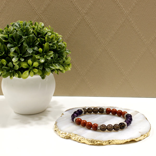 Maureen Natural Scorpio Zodiac Bracelet combination of 3 Magical Stone Amethyst, Red Jasper & Smoky Quartz for Men & Women