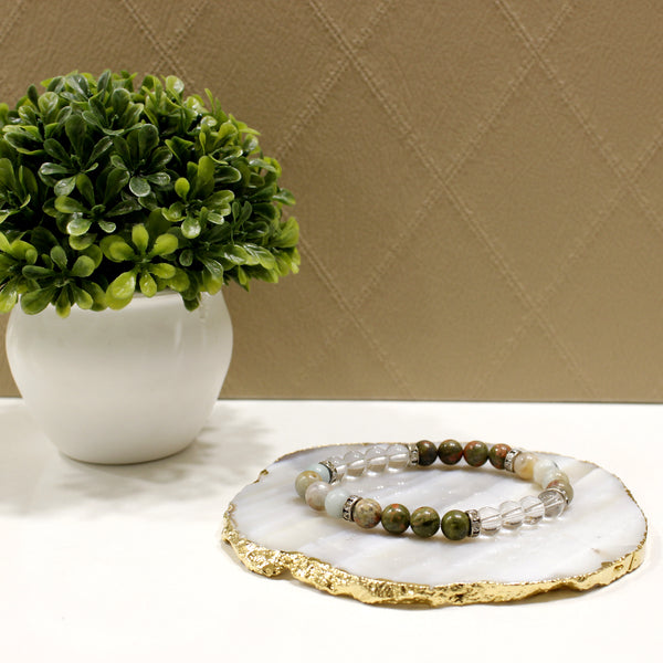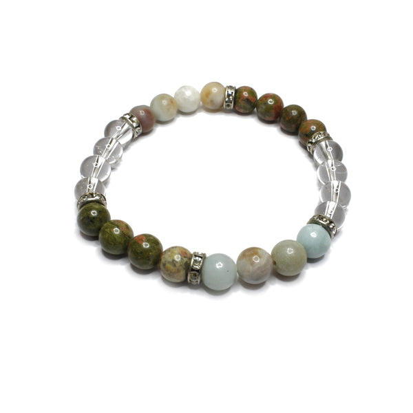Maureen Natural Virgo Zodiac Bracelet combination of 3 Magical Stone Amazonite, Unakite & Clear Quartz for Men & Women