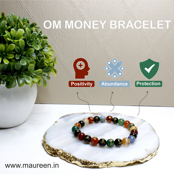 Maureen Om Money Crystal Stone Bracelet for Reiki, Chakra, Yoga, Meditation Natural Gemstones Stretchable Bracelet for Unisex