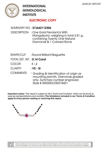 The Maureen Rose Gold Diamond Mangalsutra features a stunning blend of elegance and sophistication, crafted with premium diamonds set in a warm rose gold design. Perfect for adding a touch of luxury to any occasion. Gross Weight - 3.810 Net Weight - 2.574 Diamond Weight...
