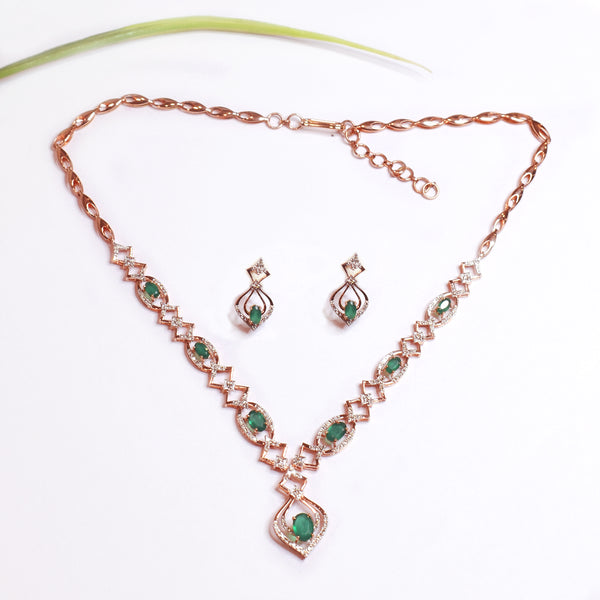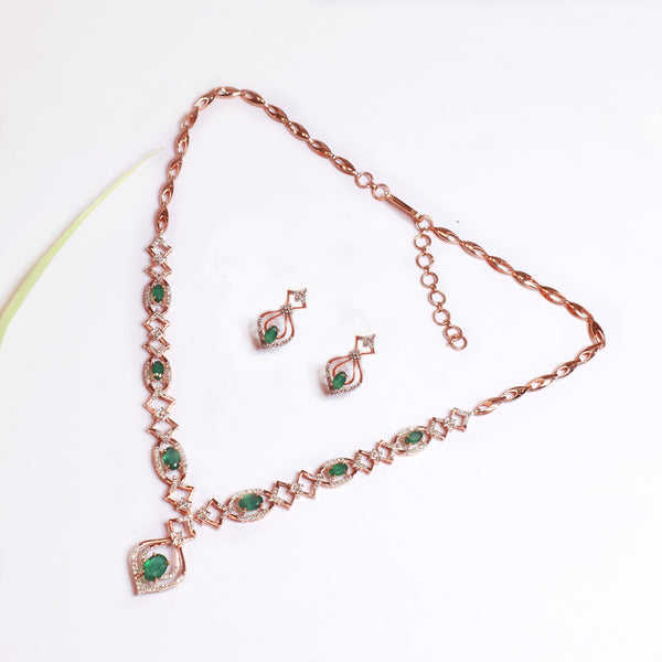 Maureen Rose Gold Diamond Necklace Set - DS56