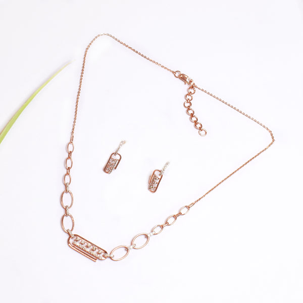 Maureen Rose Gold Diamond Necklace Set - DS58
