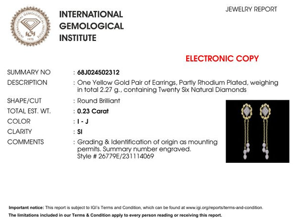 The Maureen Yellow Gold Diamond Earring features a stunning blend of elegance and sophistication, crafted with premium diamonds set in a warm yellow gold design. Perfect for adding a touch of luxury to any occasion. Gross Weight - 2.270 Net Weight - 2.224 Diamond Weight...