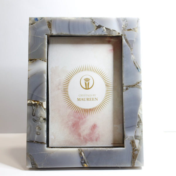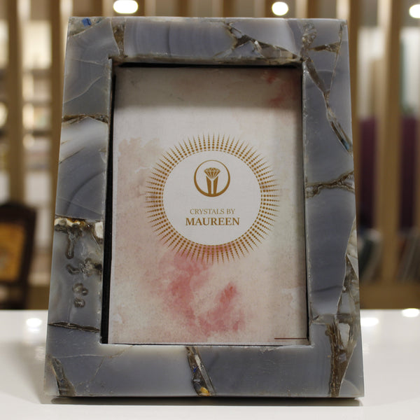 Agate Photo Frame Stone cleanses and stabilises the aura, eliminating and transforming negativity. Agate enhances mental function, improving concentration, perception and analytical abilities. It soothes and calms, healing inner anger or tension and creates a sense of security and safety.
