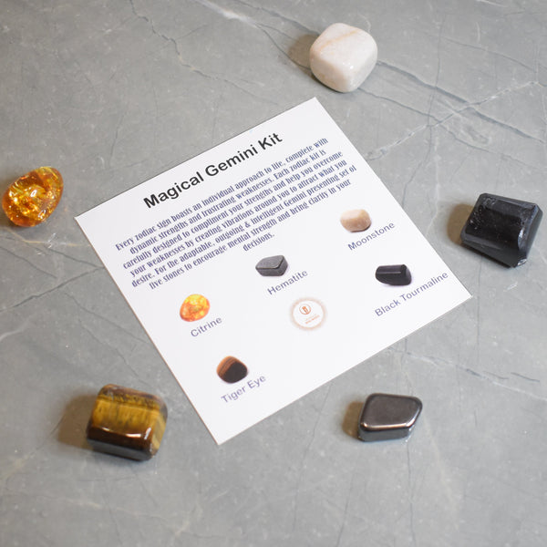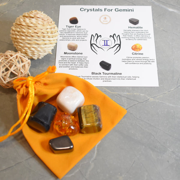 Natural Healing Tumble Stone Gemini Zodiac Kit | Natural Tumble Healing Stone Gemini Zodiac Kit Presenting Set of Five Stones to Encourage Mental Strength and Bring Clarity In Decision